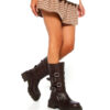 Bota Hexa marrón. Modelo confeccionado en cuero con detalle de fuelle textil escocés bordado y cinturones decorativos. Presenta forrería de fibras animal friendly y base inyectada que favorece un apoyo seguro. Altura de taco de 4 cm, plataforma de 2 cm y caña de 21 cm. La circunferencia de caña en talle 36 es de 36 cm (la medida varía según talle). Su diseño brinda estabilidad y comodidad durante todo el día.