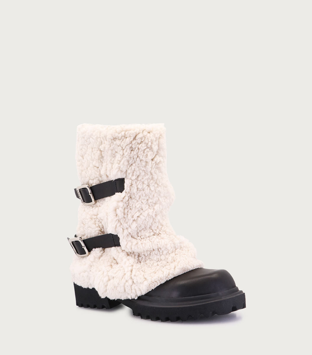 Bota Klu natural. Diseño en símil pelo con caña volcada y cinturones que aportan carácter al modelo. Calce directo, forrería de cuero y base de goma EVA que garantizan ligereza y comodidad al caminar. Altura de taco 3 cm, plataforma de 2 cm y caña de 23 cm. La circunferencia de caña en el talle 36 es de 35 cm (la medida varía según talle).