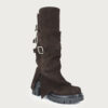 Bota Leana negra, alta de cuero con caña arrugada. Calce directo y forrería de fibras animal friendly. Taco foliado. Altura de taco 5 cm. Altura de caña 43 cm. La circunferencia de caña en el talle 36 es de 42 cm (la medida varía según talle).