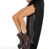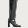 Botineta Alfi negro. Modelo confeccionado en cuero gamuzón con caña volcada y detalle de tiento lateral. Presenta calce directo, forrería de fibras animal friendly y base inyectada que aporta estabilidad. Altura de taco de 6,5 cm, plataforma de 2 cm y caña de 18 cm. La circunferencia de caña en talle 36 es de 33 cm (puede variar según talle). Brinda un apoyo cómodo y firme.