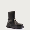 Botineta Shaki negra. Modelo tipo chelsea confeccionado en cuero con detalle de herraje media esfera en el elástico. Presenta forrería de fibras animal friendly y base inyectada que favorece un apoyo seguro. Altura de taco de 6,5 cm, plataforma de 2 cm y caña de 16 cm. La circunferencia de caña en talle 36 es de 27 cm (la medida varía según talle). Su estructura brinda comodidad y estabilidad diaria.