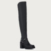 Botineta Zera negro. Modelo confeccionado en cuero con apliques y cinturón regulable de posiciones múltiples que aporta versatilidad al diseño. Presenta forrería de fibras animal friendly y taco inyectado. Altura de taco de 5,5 cm y caña de 42 cm. La circunferencia de caña en talle 36 es de 30 cm (puede variar según talle). Ofrece estabilidad y confort en el uso.